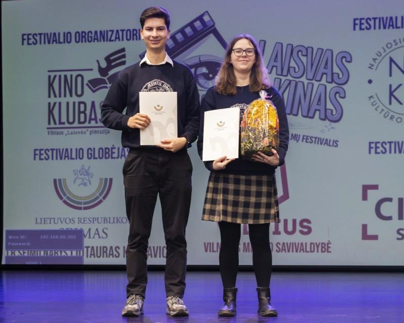 Kovo 13d. įvykusiame Lietuvos mokinių trumpametražių filmų festivalyje „Laisvas kinas 2026“ buvo apdovanoti gimnazijos Medijų meno grupės mokiniai.