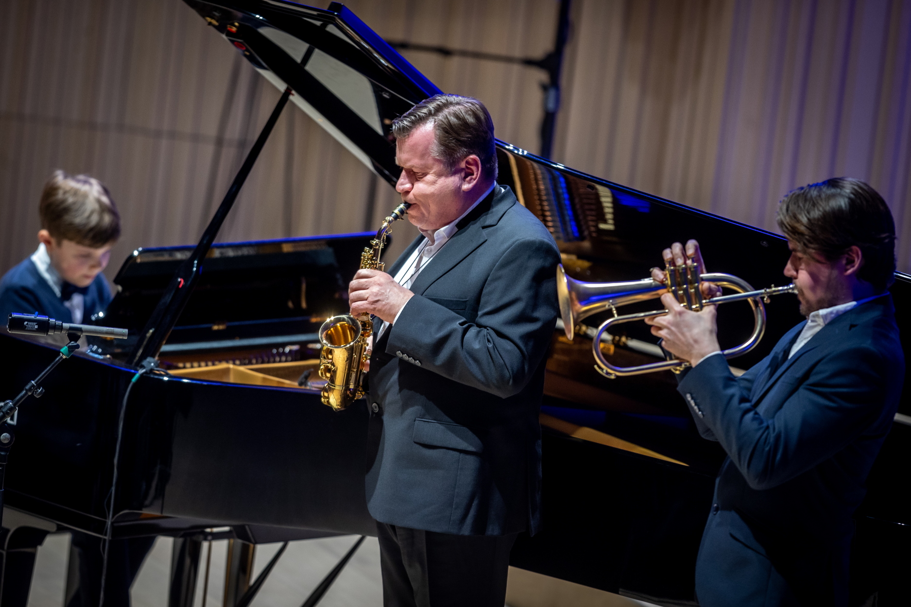 Antroji koncerto dalis prasidėjo improvizacijų laisve. Lietuvos muzikos ir teatro akademijos profesorius, Nacionalinės kultūros ir meno premijos laureatas, vienas žymiausių šalies saksofonininkų Petras Vyšniauskas atliko improvizacijų ciklą Prošvaistės. Scenoje kartu muzikuoti stojo ir Petro sūnus Dominykas Vyšniauskas bei anūkas, gimnazijos ketvirtokas Jonas Vyšniauskas.