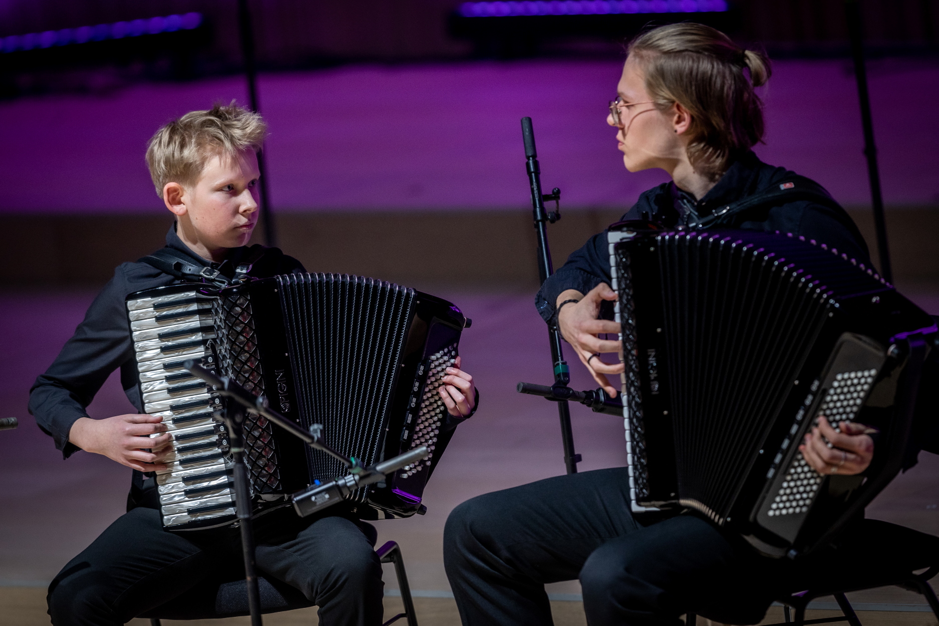 Vėliau scenoje pasirodė akordeonistai broliai Liudas ir Saulius Aleksandravičiai, grodami Paulo Jorge Ferreira kūrinį Infinito Grego. Liudas ir Saulius nuosekliai tęsia šeimos tradiciją – akordeonu grojo jų senelis, ir net prosenelis.